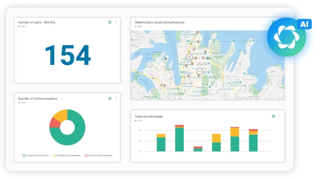 “Borealis offers a comprehensive suite of features that truly support effective stakeholder management. The ability to create detailed stakeholder profiles, track interactions, map stakeholders geographically, and generate customized reports has been invaluable. The engagement tracking and task management functionalities help keep our team aligned and accountable.”
